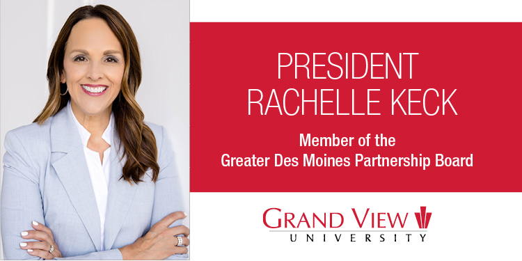 Grand View University President Dr. Rachelle Keck has been named to the 2026 Greater Des Moines Partnership Board of Directors, joining regional leaders from business, education, and the nonprofit sector who work collectively to advance economic growth and quality of life across Greater Des Moines.